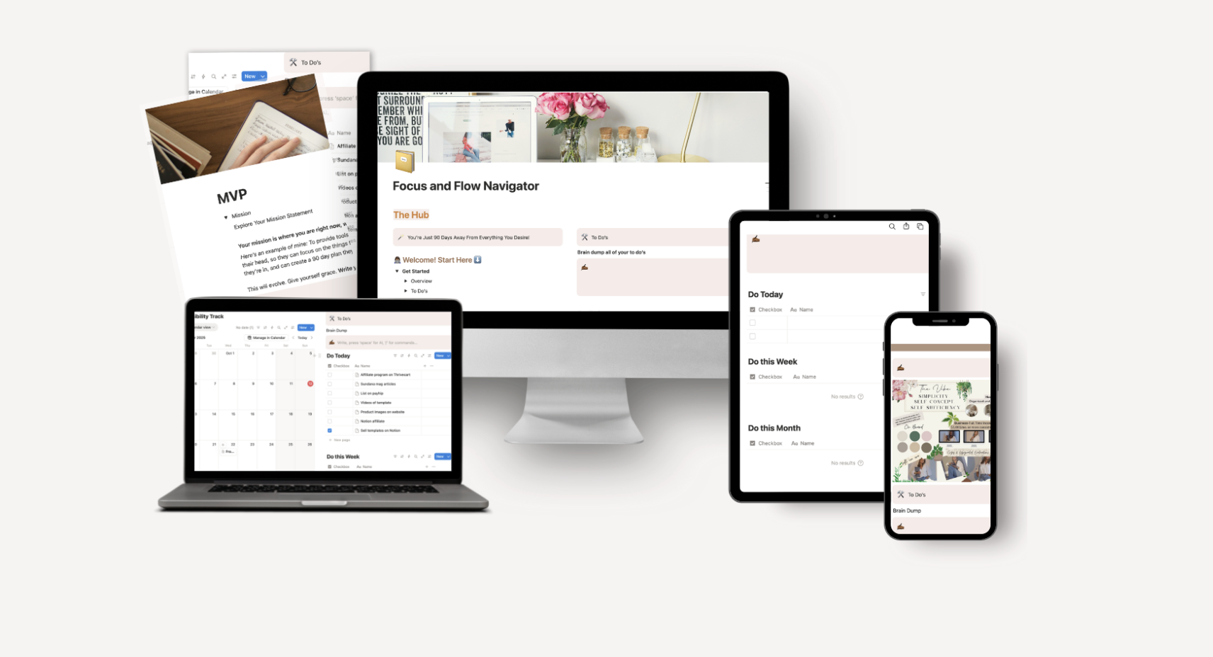 We’ve done the heavy lifting so you can skip the setup and dive straight into execution. Your investment is a pre-built, ready-to-use Notion System with a clear flow: