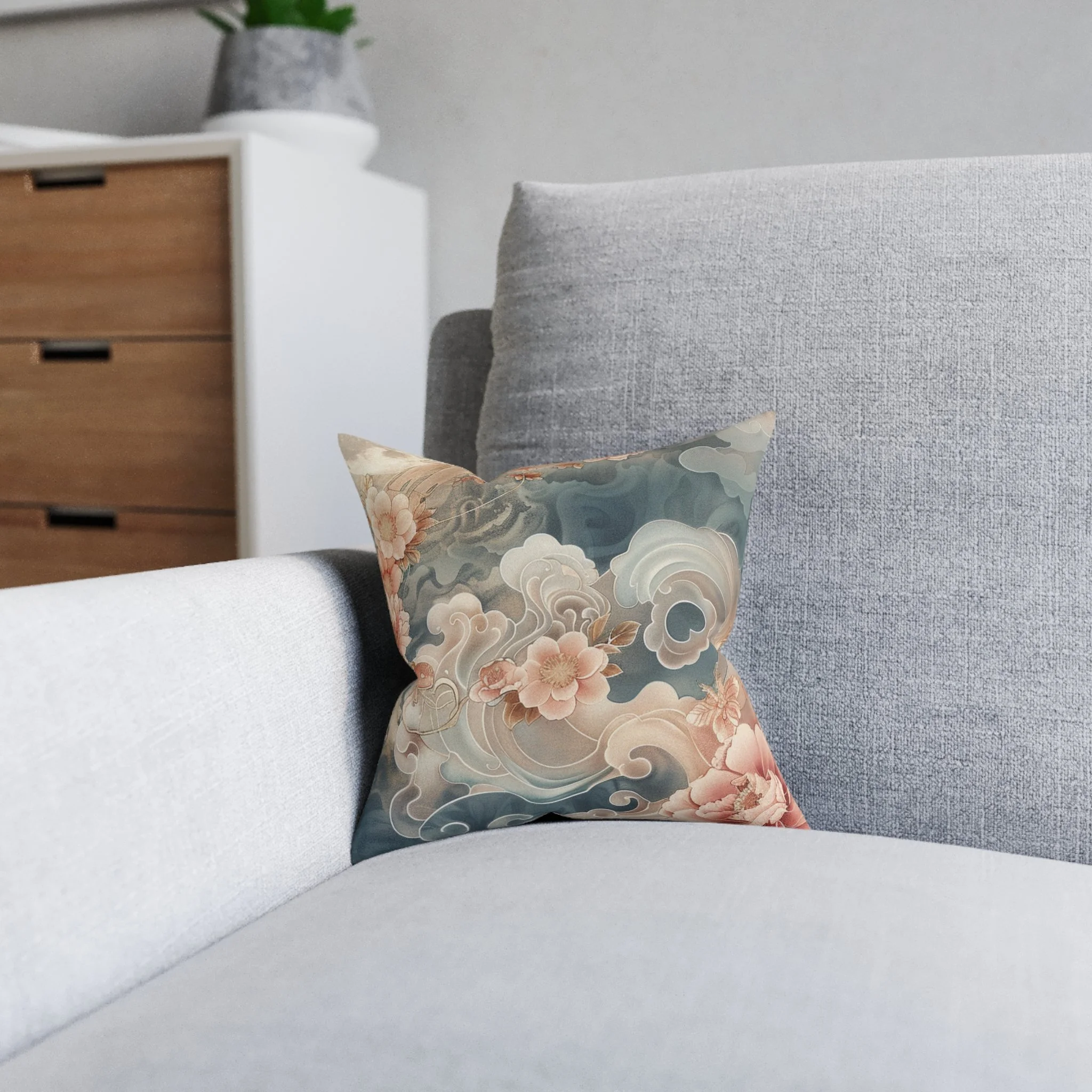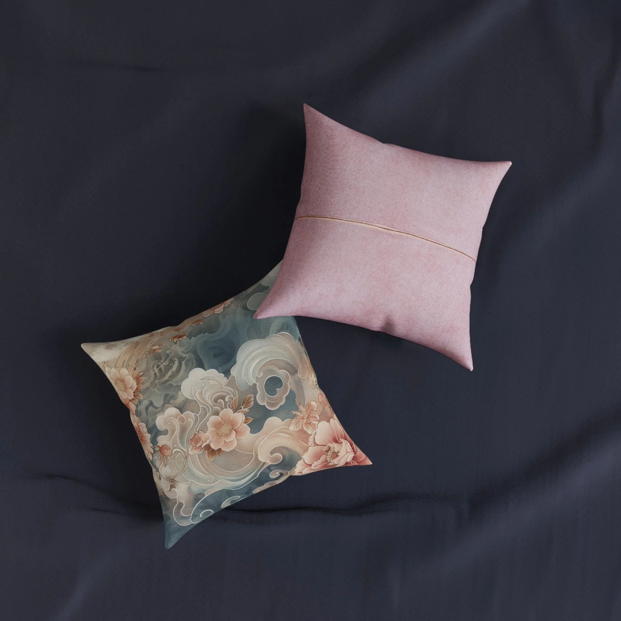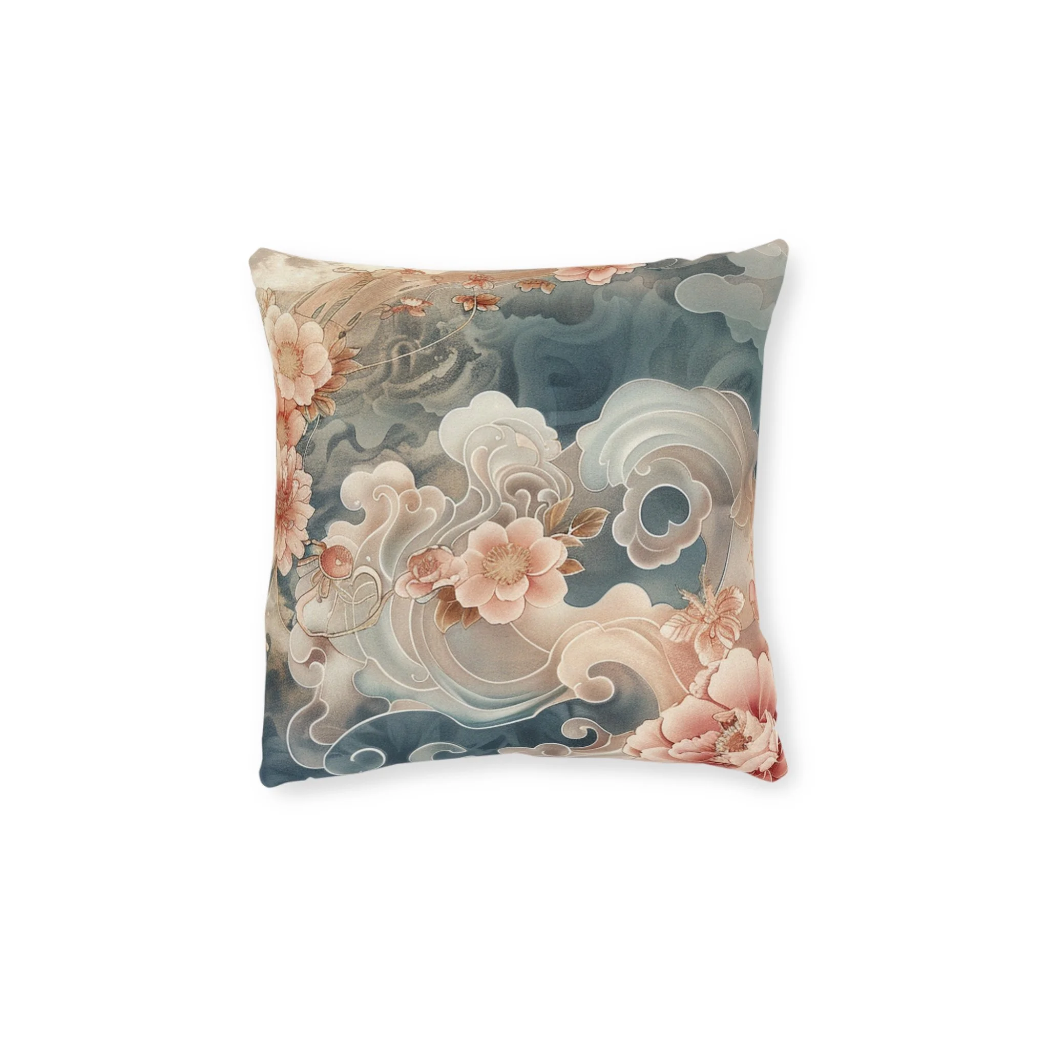 Moonlit Bloom Square Pillow — Vintage Peach & Teal Decorative Cushion