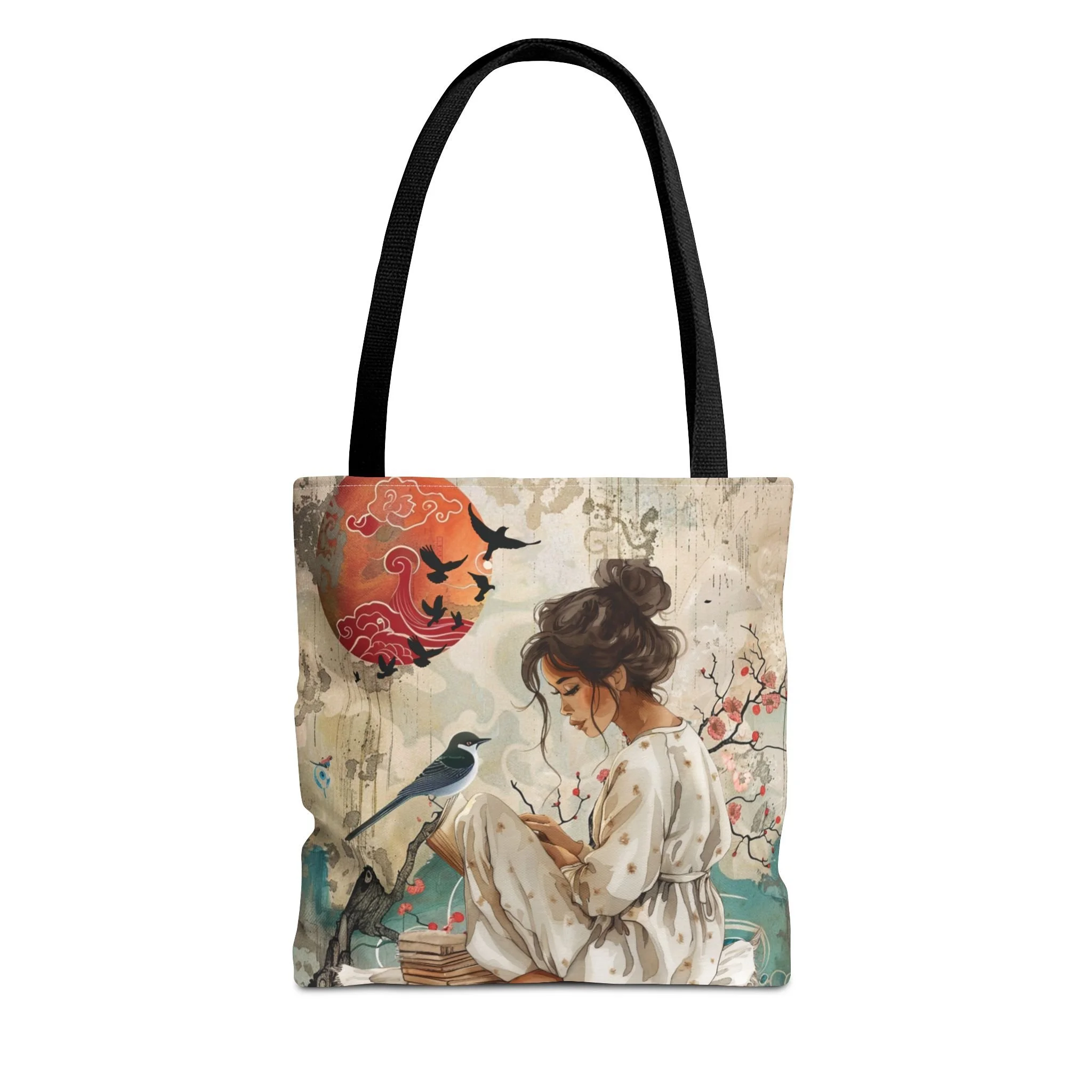 Bring this tote along to book club meetups, library runs, plein-air sketch sessions, or as a companion for slow weekends. It speaks to those who savor small rituals: a steaming cup, a margin full of notes, and the calm company of nature-inspired artwork. The design blends vintage softness and contemporary durability so it looks like it belongs in a cozy studio or an urban café alike.